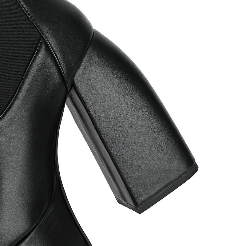 Women Round Toe Black Patent Leather PU Ankle Platform Boots Thick High Heel For For Ladies Winter Booties