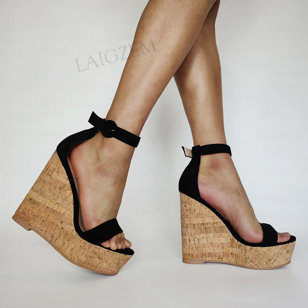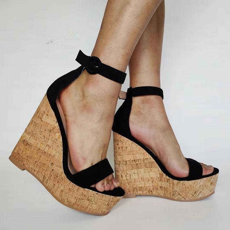 Women Sandals Platform Wedge Faux Suede High Heels Ankle Straps Party Pumps Ladies Shoes Woman Large Size 43 44 50 52