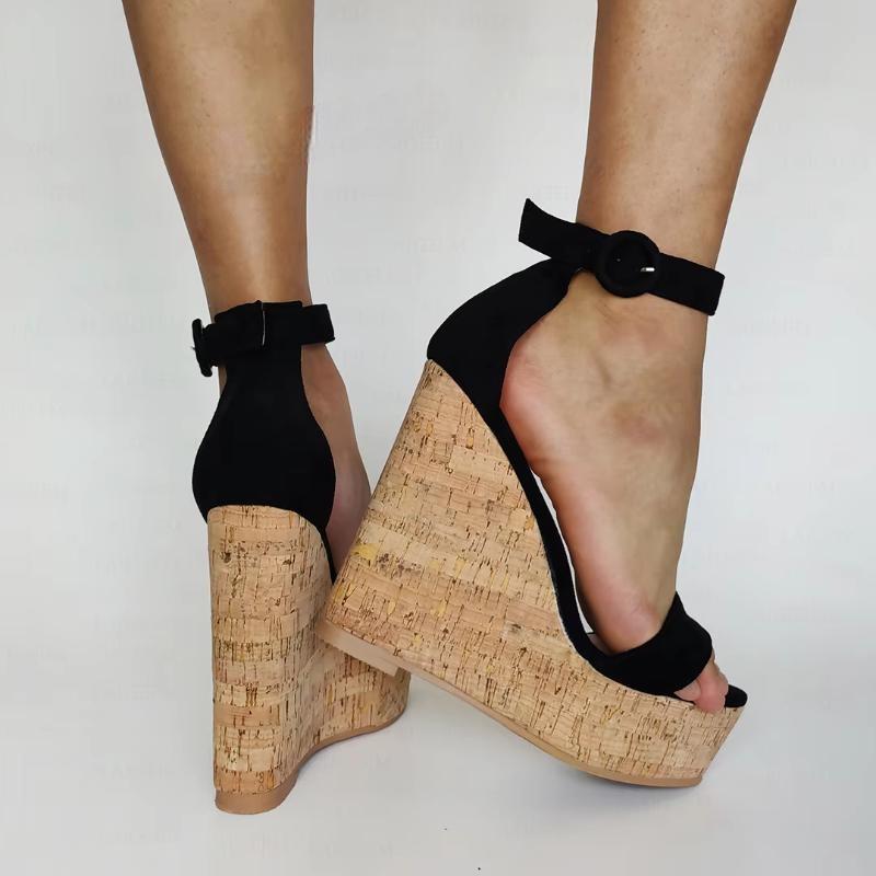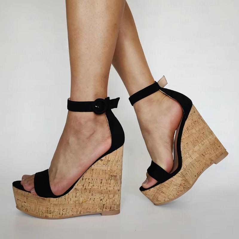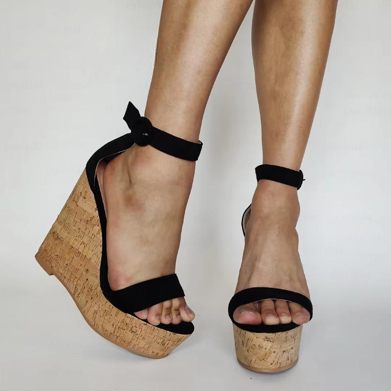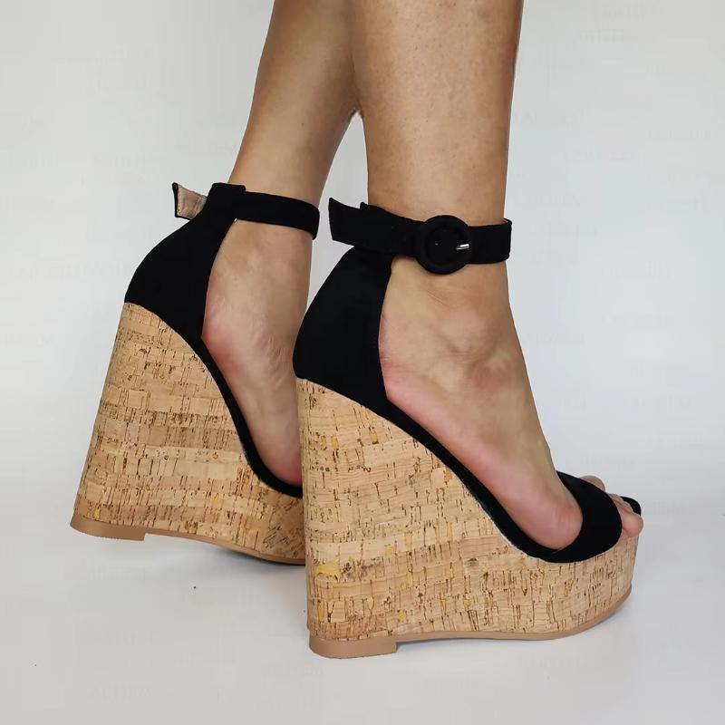Women Sandals Platform Wedge Faux Suede High Heels Ankle Straps Party Pumps