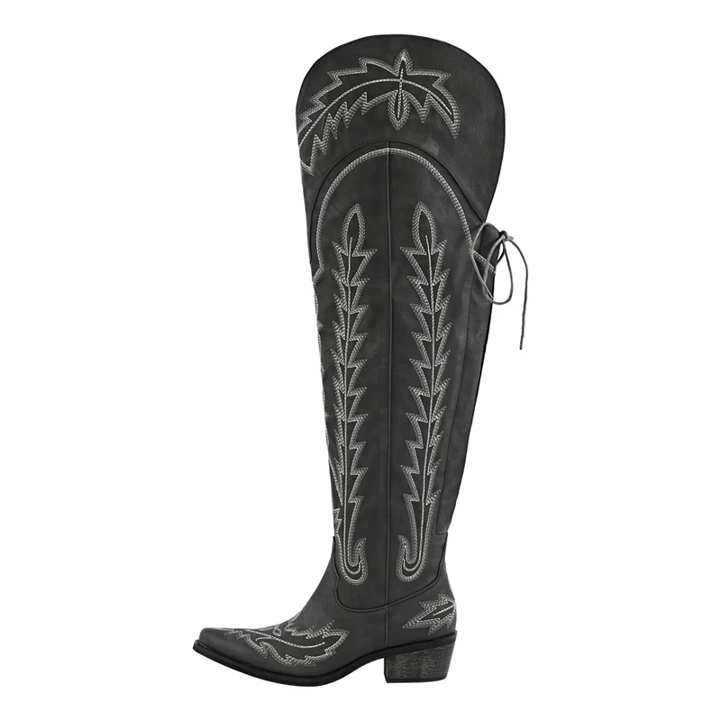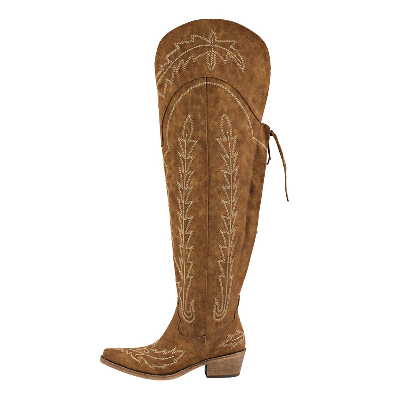 Women Thigh High Over the Knee Boots Red Cowboy Boots Side Zipper Western Embroidery Boots