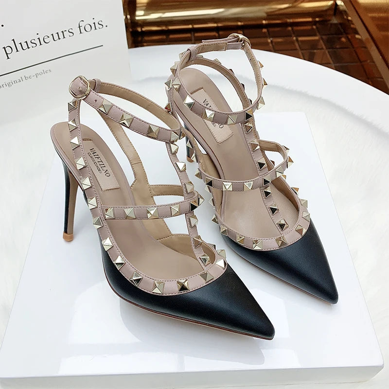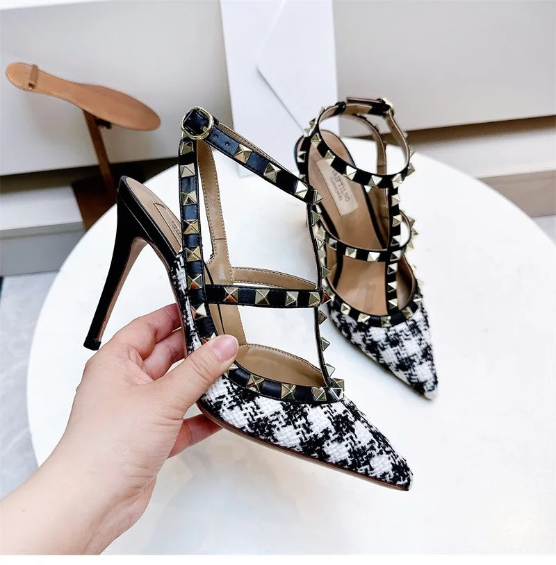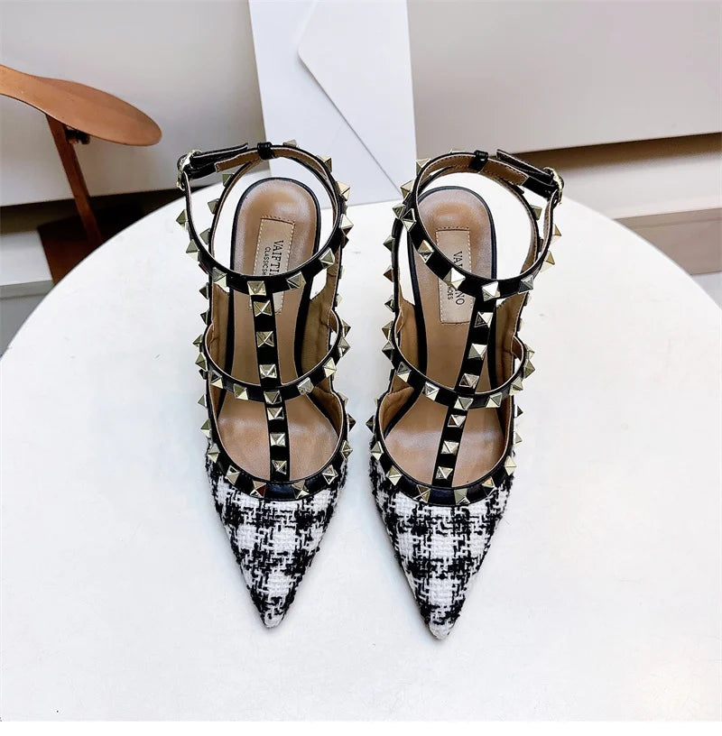Women's Heels Sandals Luxury Gladiator Rivet High-heeled Sandals Black Pointed toe High Quality Pumps Elegant Woman Prom Shoes