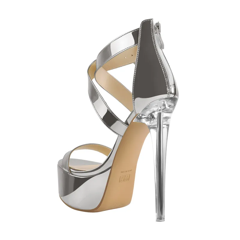 Women's Peep Toe Platfrom Silver Gold Cross-tied Thin High Heel Stiletto Party Dress Sandals