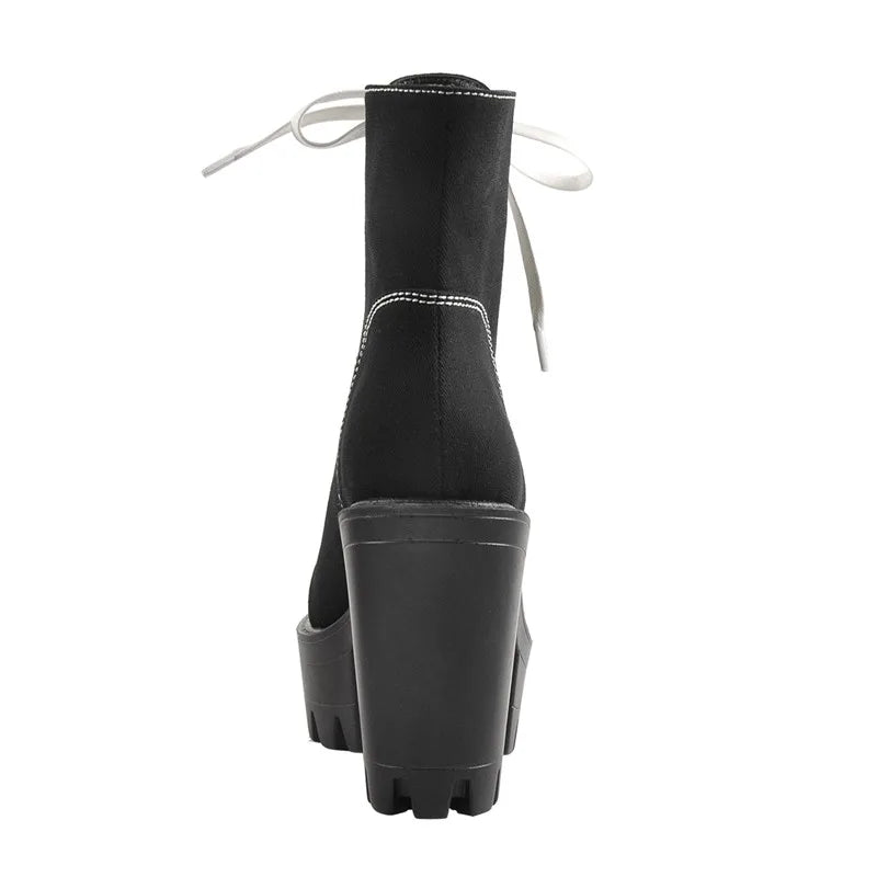 Women's Platform Lace Up Canvas Ankel Boots Block Chunky Heels Shoes Large Size Fashion Autumn Booties