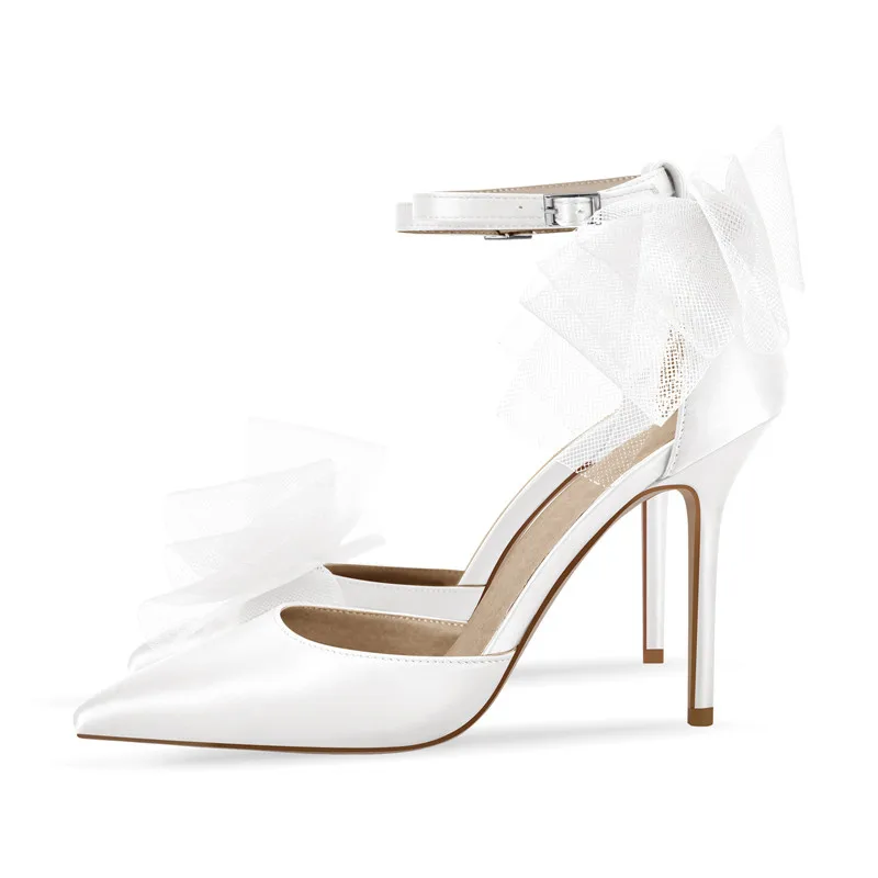 Women's Pointed Toe Tulle Bow Heels Stiletto High Heels