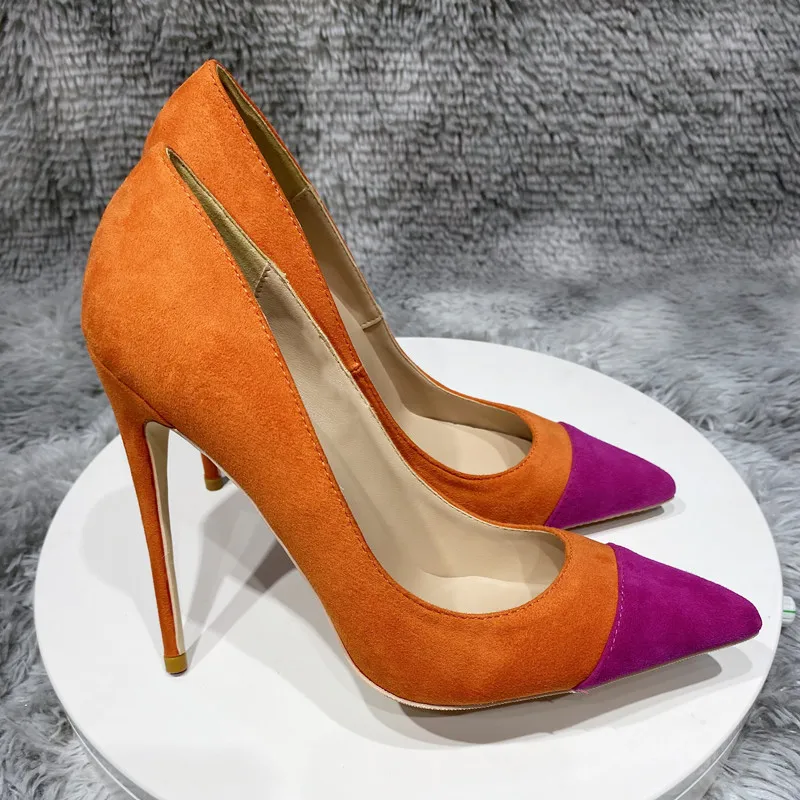 women's shoes fashion 12cm Orange velvet high heels Color matching narrow pointed casual shoes, 10cm 8cm 33-45