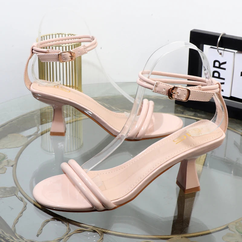women's shoes in the summer of black outside stiletto sandals with round heads open toes Ladies high-heeled shoes 7.5CM