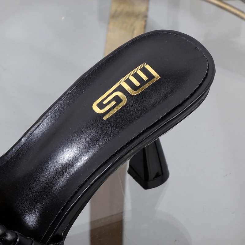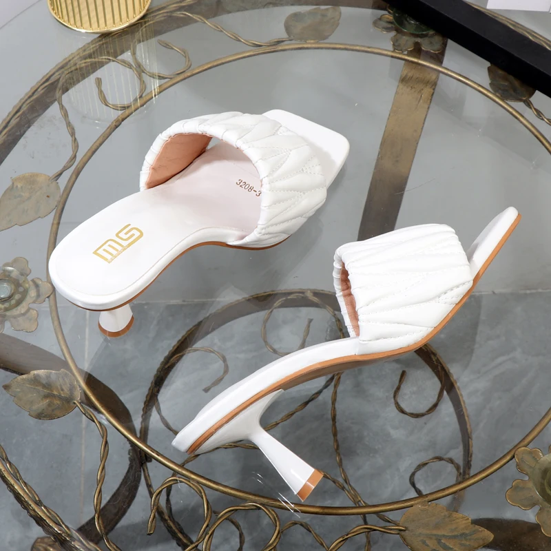 Women's slippers in the summer of wearing sandals with soft leather high heels fashionable versatile slippers square head