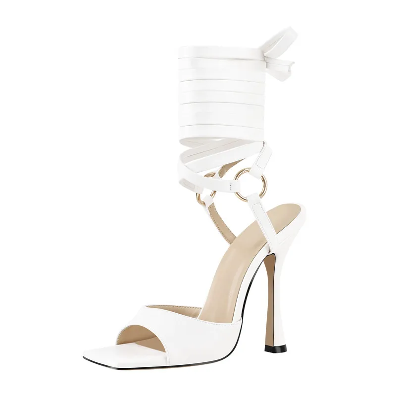 Women's Square Open Toe Sandals Lace Up High Heels Summer Party Dress White Green Fashion Heels Sandals
